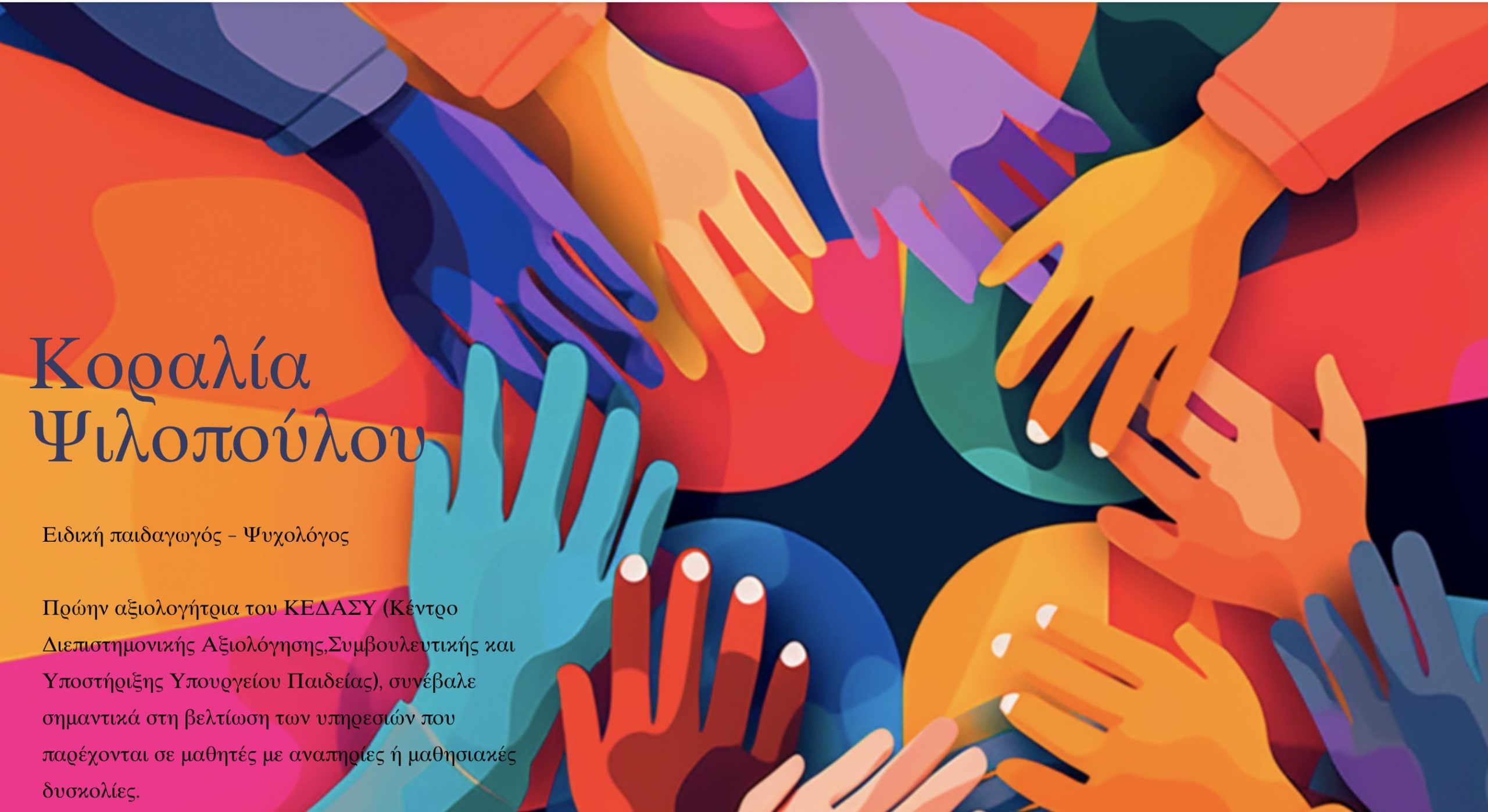 Η Κοραλία Ψιλοπούλου είναι ειδικός παιδαγωγός με πολυετή εμπειρία στην εκπαίδευση και την υποστήριξη μαθητών με ειδικές εκπαιδευτικές ανάγκες. Ως Πρώην αξιολογήτρια του ΚΕΔΑΣΥ (Κέντρων Διεπιστημονικής Αξιολόγησης υπουργείου παιδείας, Συμβουλευτικής και Υποστήριξης), συνέβαλε σημαντικά στη βελτίωση των υπηρεσιών που παρέχονται σε μαθητές με αναπηρίες ή μαθησιακές δυσκολίες, προσφέροντας καθοδήγηση και στήριξη τόσο στους μαθητές όσο και στις οικογένειές τους. Με τον συνδυασμό γνώσης, εμπειρίας και αφοσίωσης στον τομέα της ειδικής αγωγής, η Κοραλία Ψιλοπούλου έχει αφήσει το αποτύπωμά της στην εκπαιδευτική κοινότητα.